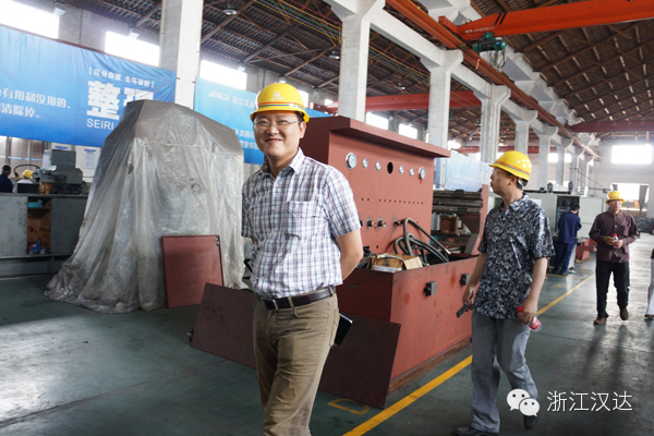 來一張應(yīng)副鎮(zhèn)長的燦爛笑容(配白:浙江漢達(dá),不錯不錯,做得好哦)。
